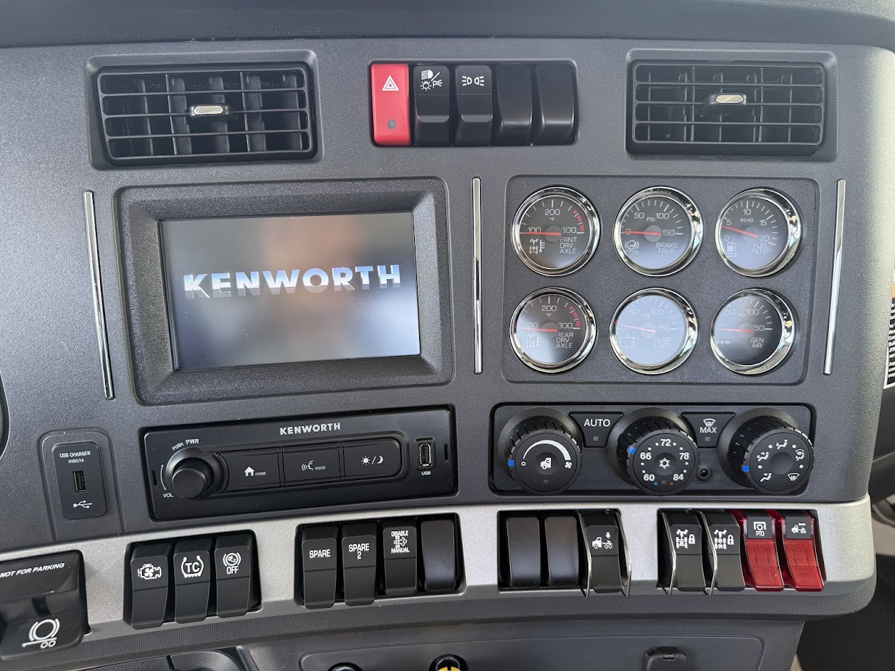 Come by our Fenton dealership to check out this beautiful 2027 Kenworth W990 day cab. This unit is equipped with a Paccar MX-13 510HP engine with a Paccar TX-12 automatic transmission. This unit has dual exhaust, a no-tilt fifthwheel, disc brakes, and is wet-kit ready. On the inside, it features a NavPlus infotainment system, a full gauge package, and heated driver seat. This truck combines beauty and power and will definitely turn heads going down the road. Feel free to call our Fenton location or stop in today!